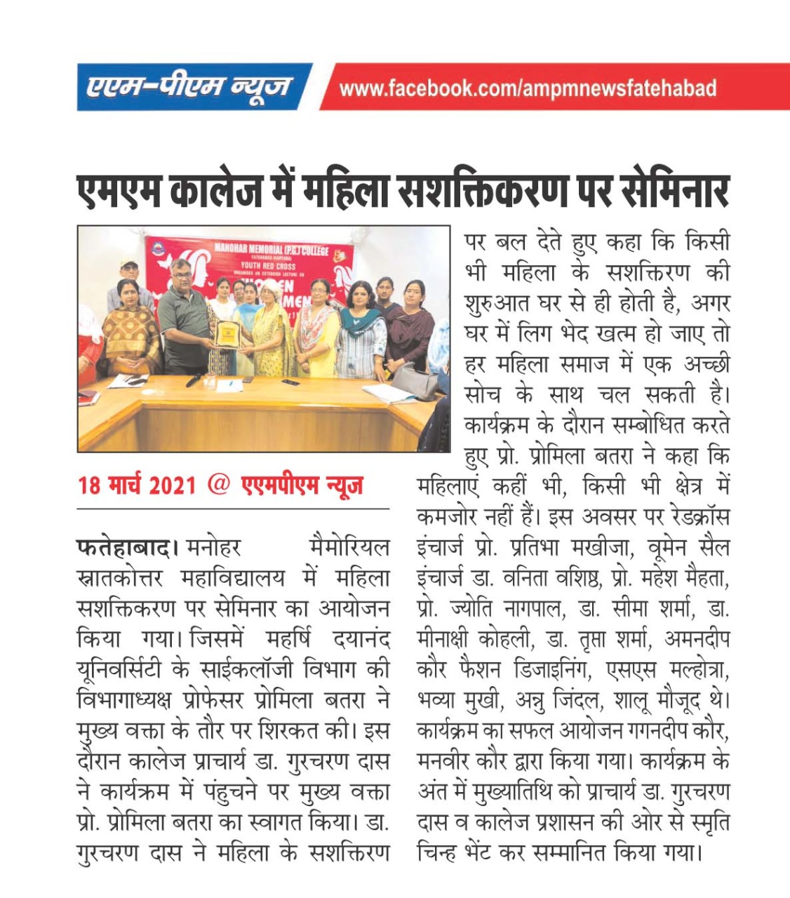 College visits Red Cross Secretary Haryana State