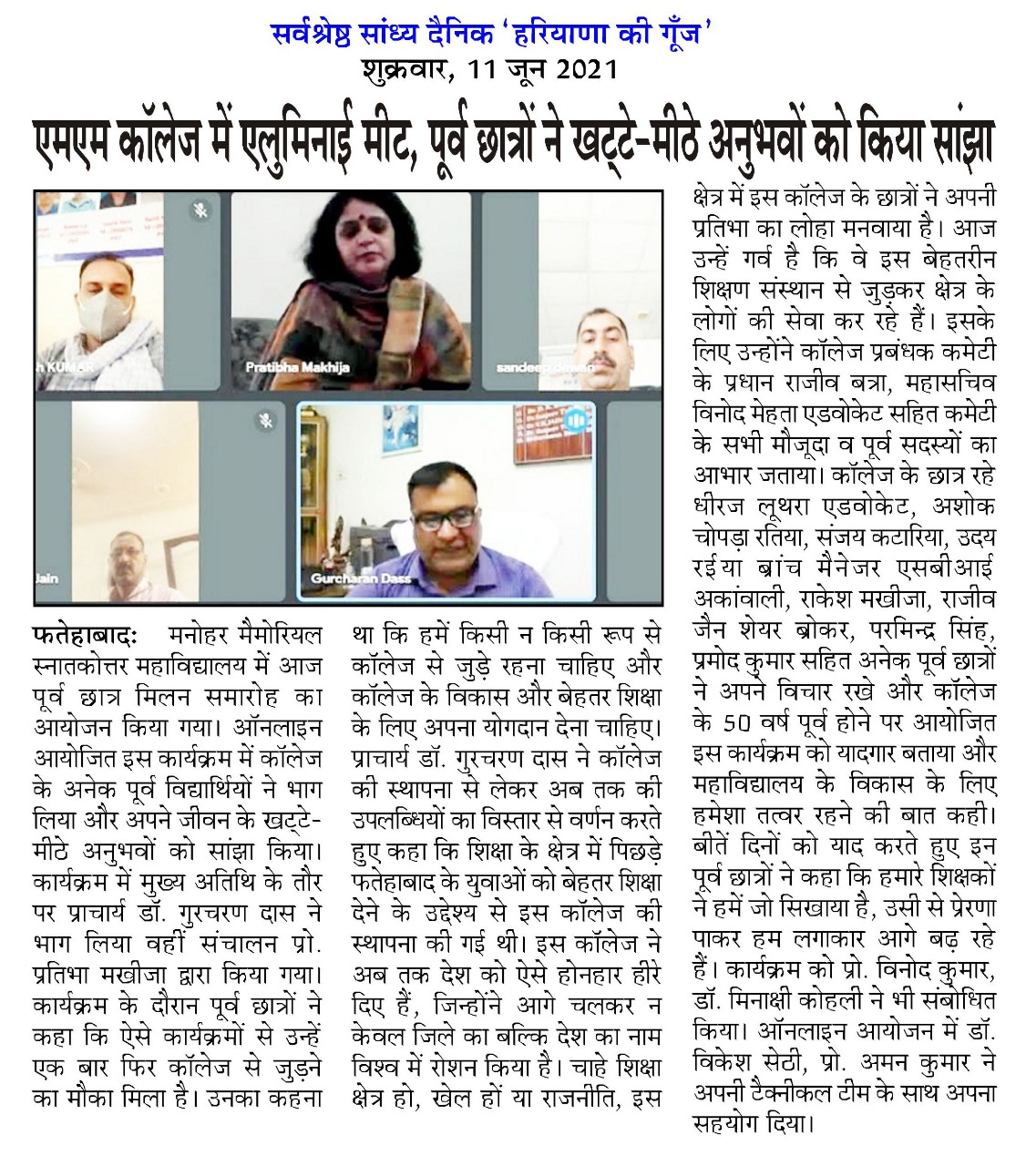 M. M. College honored by District Red Cross Society, Fatehabad on the occasion of Blood Donar Day at Gurudwara Singh Sabha, Fatehabad