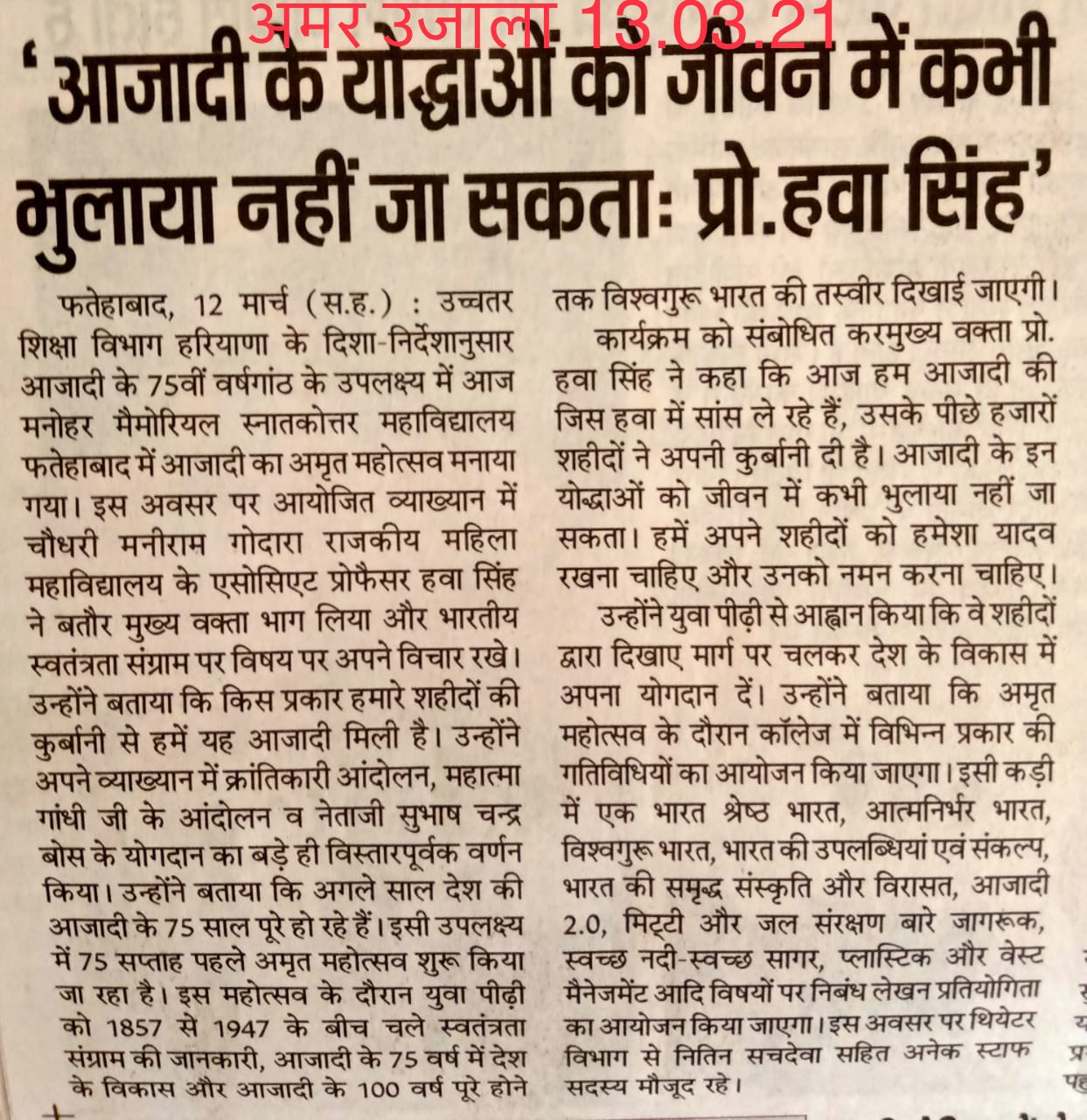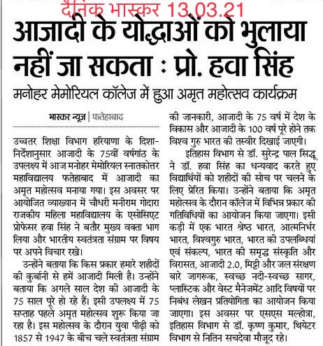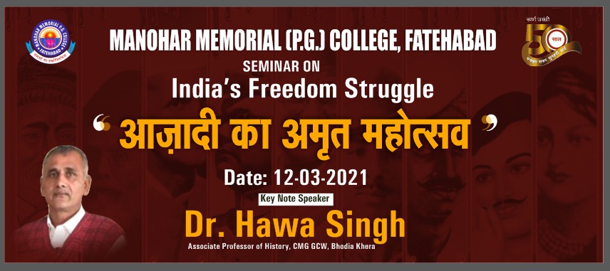 Key Note Speaker, Dr. Hawa Singh, Associate Professor, CMJ,GCW, Bhodia Khera Organised by Dr. Surender Pal Singh, Department of History