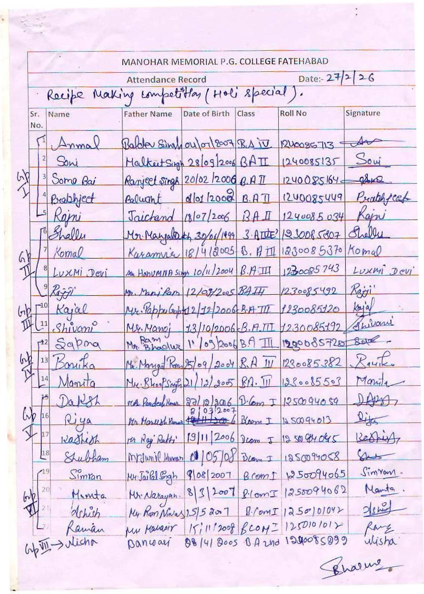 Holi Special Recipe Making Competition