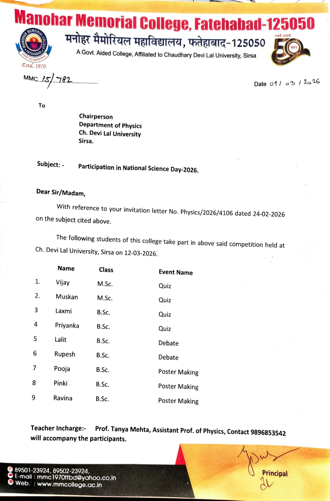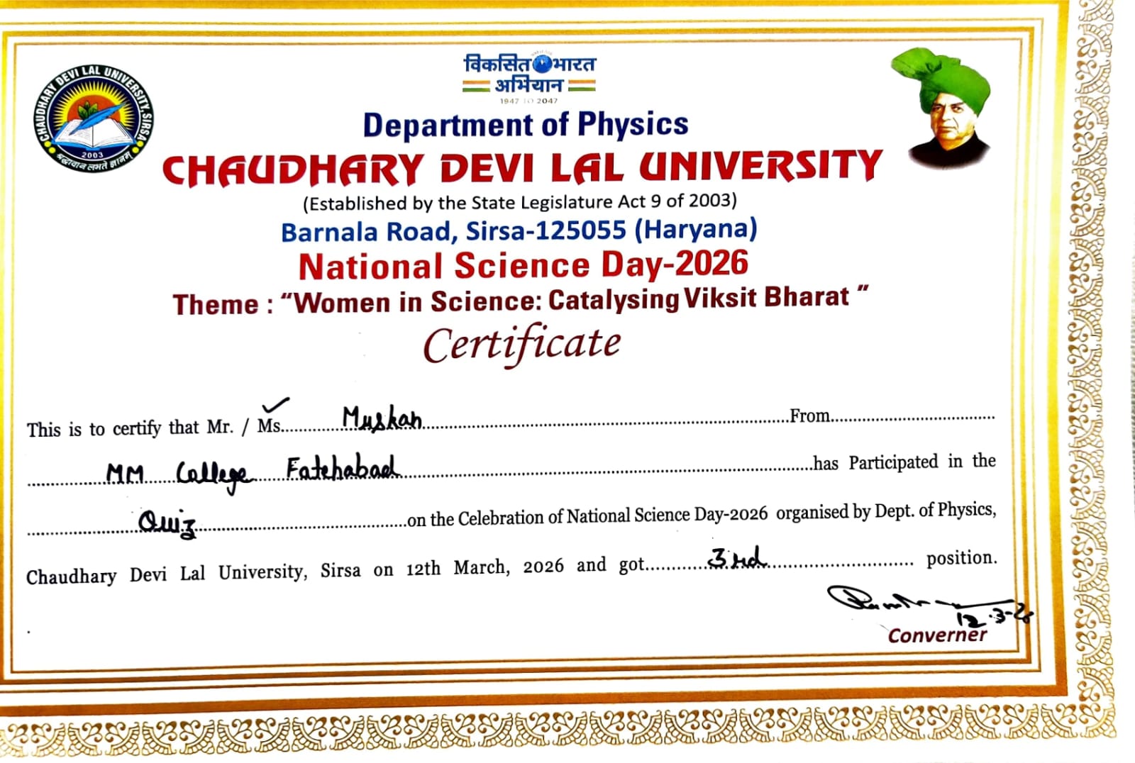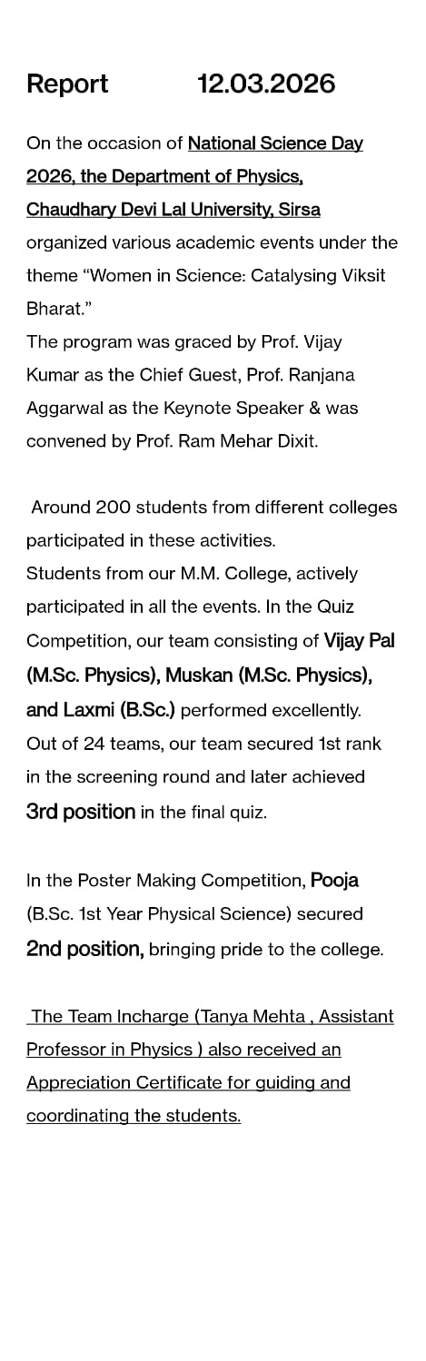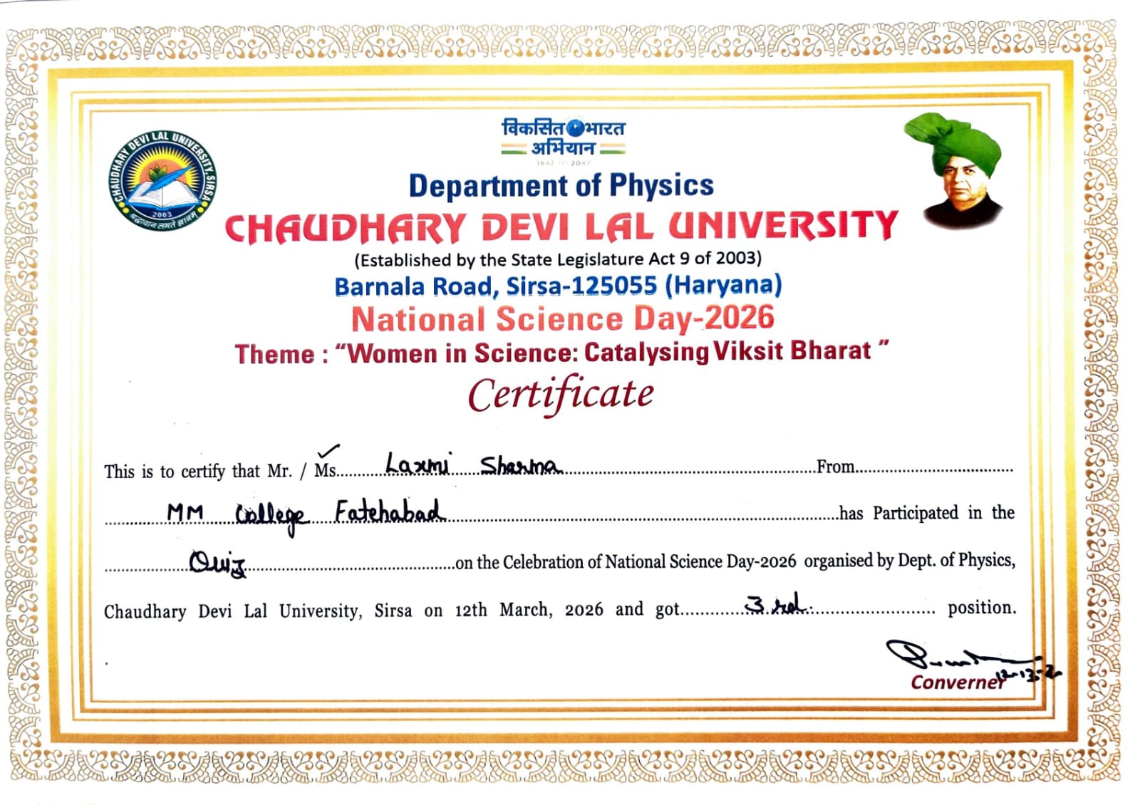 Celebration of National Science Day 2026 organized by the Department of Physics at Chaudhary Devi Lal University, Sirsa. The event focuses on the theme “Women in Science: Catalysing Viksit Bharat”, highlighting the vital role of women scientists in national development.