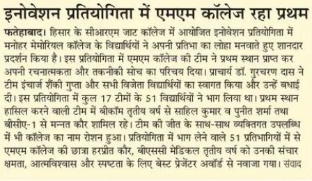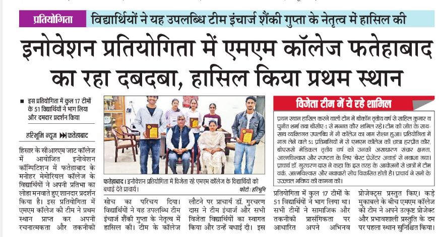 INNOVATION COMPETITION CRM JAAT COLLEGE HISAR