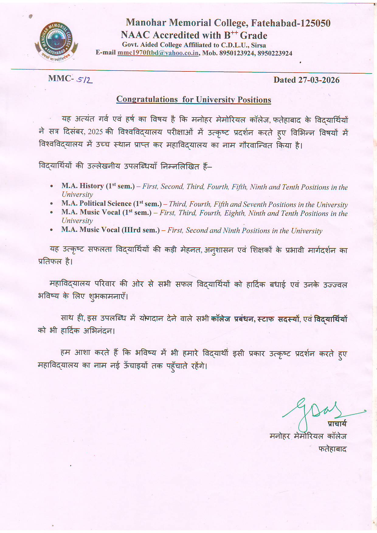 Noice for Congratulations for University Positions (512)