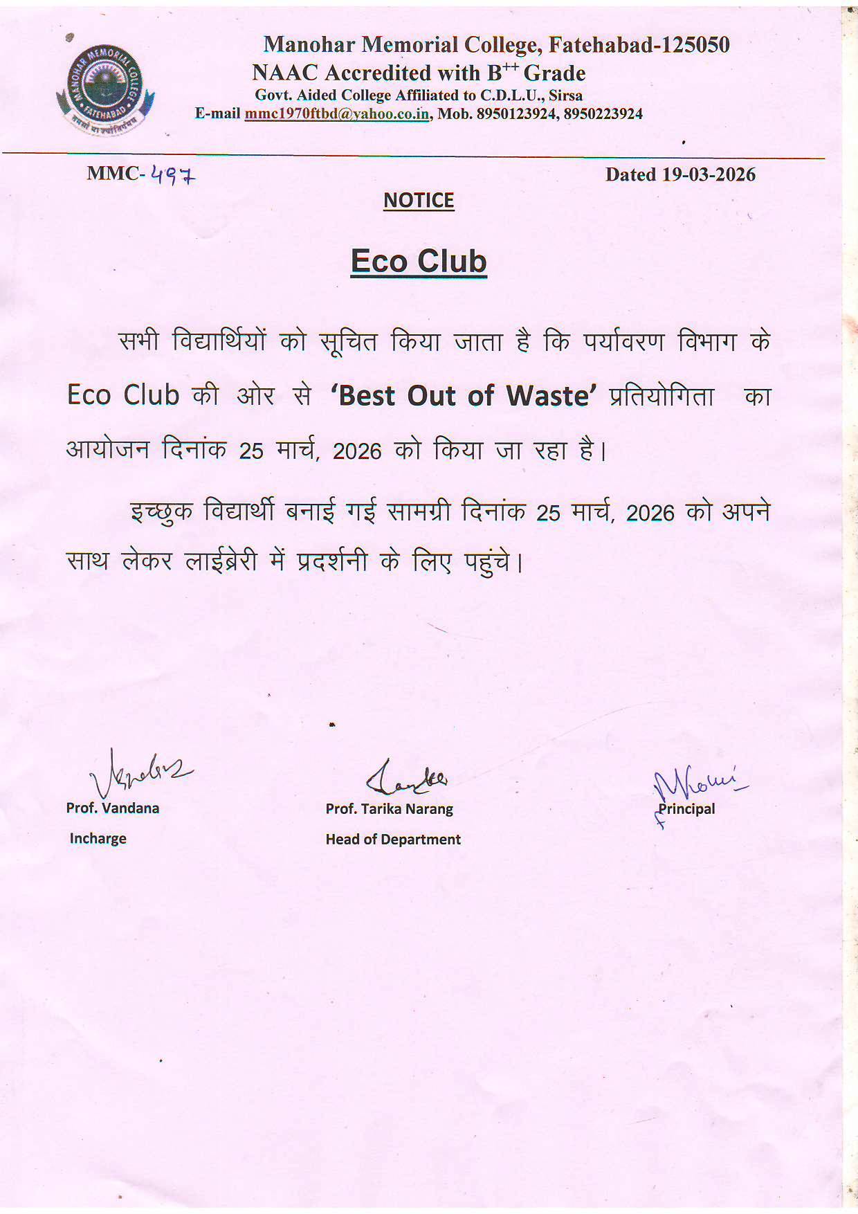 Notice for Best Out of Waste (497)