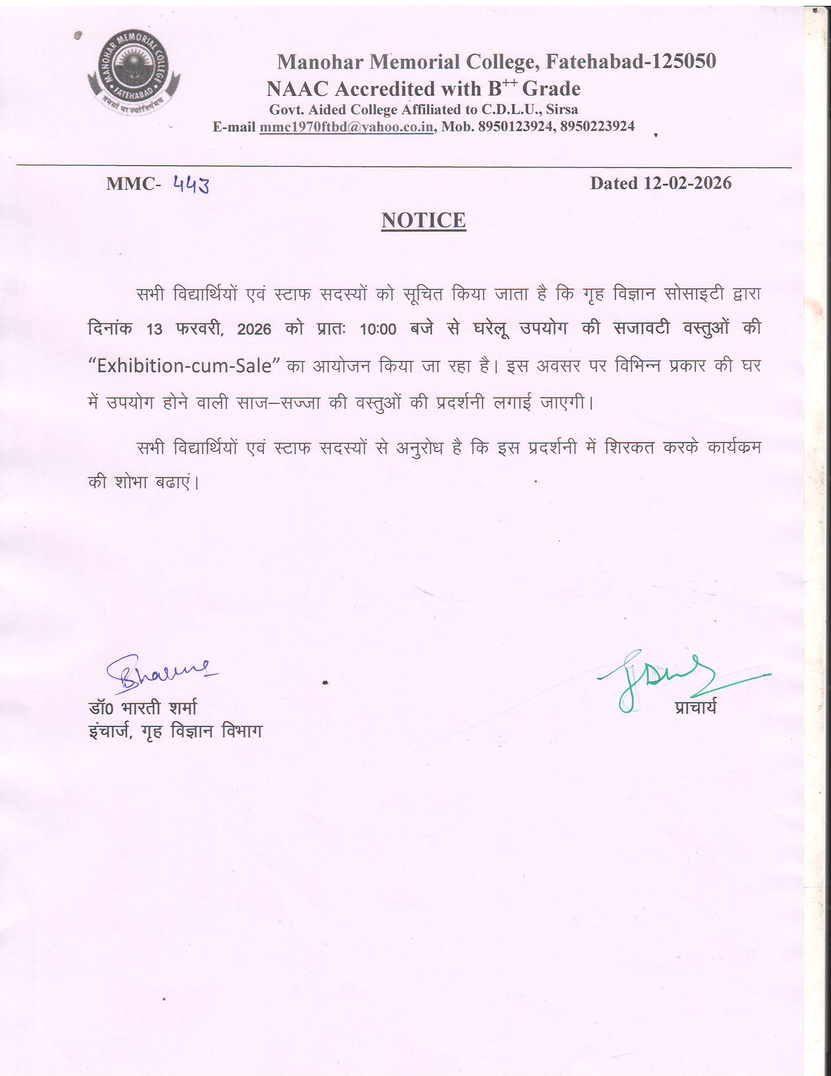 Notice For Exhibition -Cum -Sale (443)