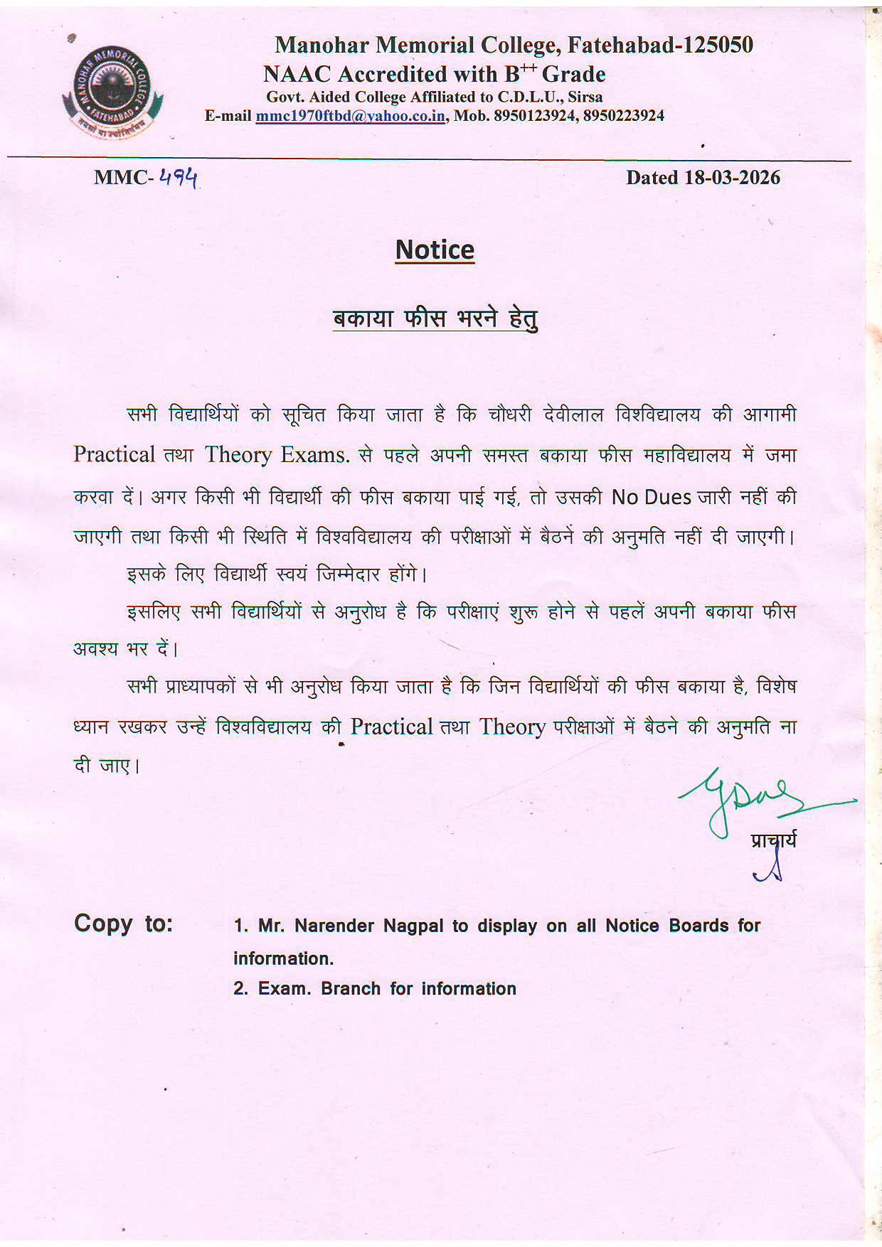 Notice for To Pay OutStading fee (494)